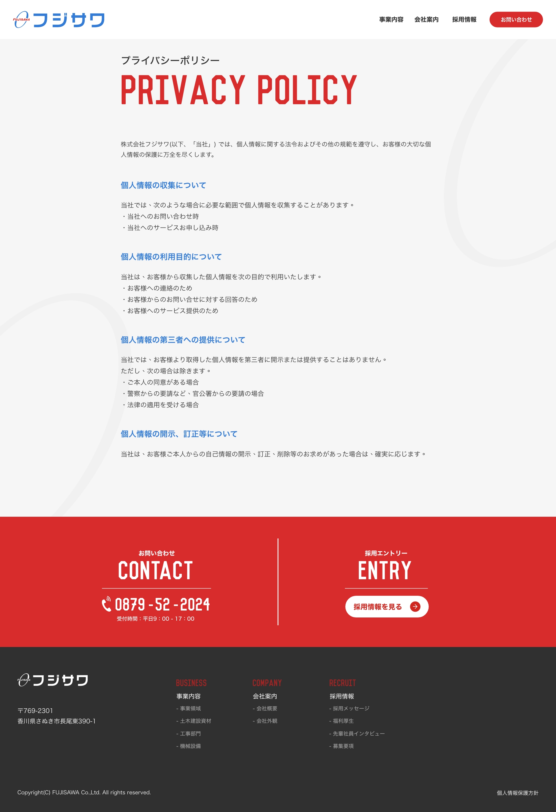 個人情報保護方針 | 株式会社フジサワ